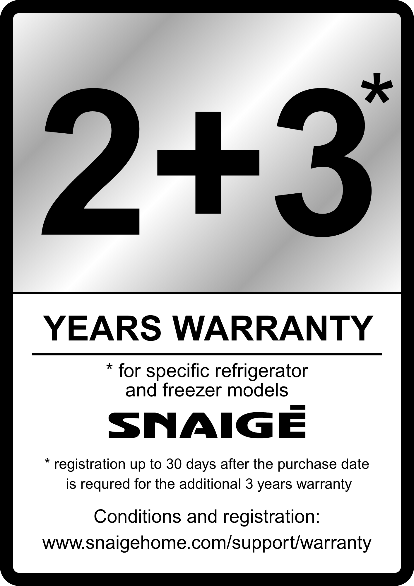Any additional warranty, if applicable, is valid only after registering the appliance within 30 days of the date of purchase on the website: https://www.snaigehome.com/support/warranty/register-your-snaige-product-warranty/.